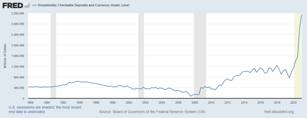 Let’s let the Martens tell the story: https://wallstreetonparade.com/2021/07/fed-chair-powell-got-a-lesson-in-economics-from-senator-lummis-u-s-households-are-sitting-on-the-highest-level-of-bank-deposits-in-the-past-68-years/