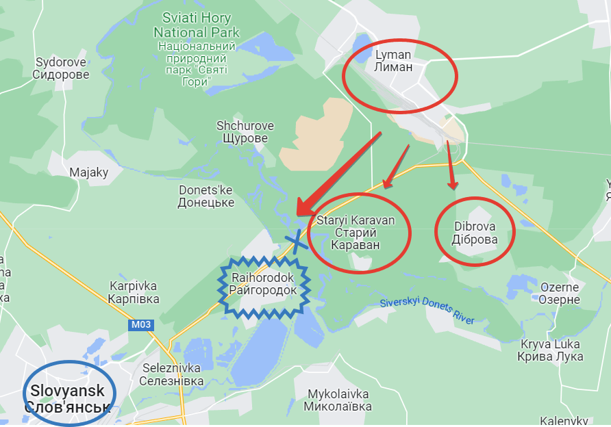 As for Slavoviansk, wher is the breakout from Lyman through the Sviati Hory forest.