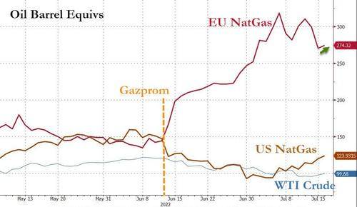 As reported by Bloomberg, Russia’s Gazprom has declared force majeure on gas supplies to Europe to at least 3major customer, according to the letter from Gazprom dated July 14 and seen by Reuters on Monday.