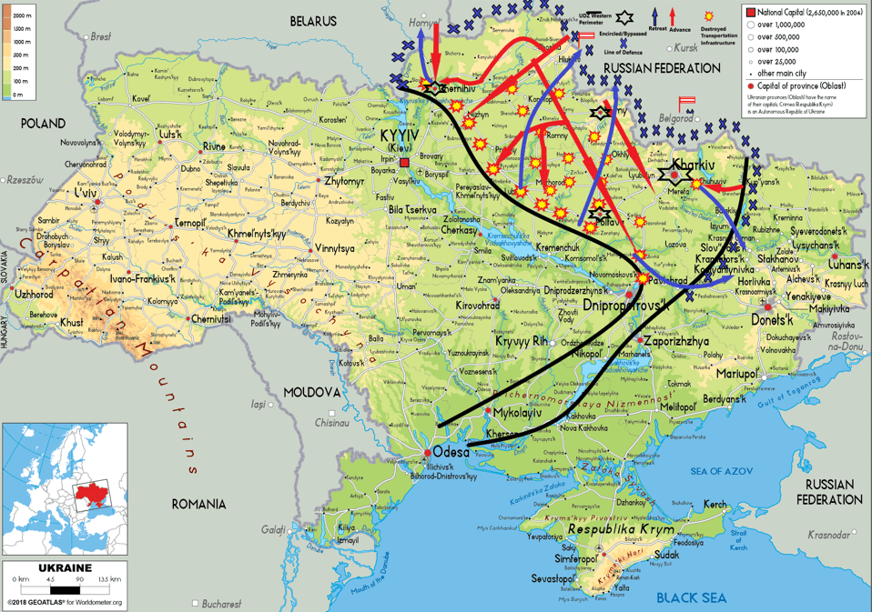 “If the Russians are able to skirt the large population centres, reach the outskirts of Poltava, and bring the large railway marshalling yards, junctions and highways under fire, this will be the death knell for the NATO-Ukrainian forces to the east. After a set interval allowing those who wish to escape, the infrastructure can be destroyed. As Russian forces move back along the E40 and north along the routes that got them there. they will be able to destroy everything including fuel stations, radio/microwave towers, sub-stations, and bridges along the way.”