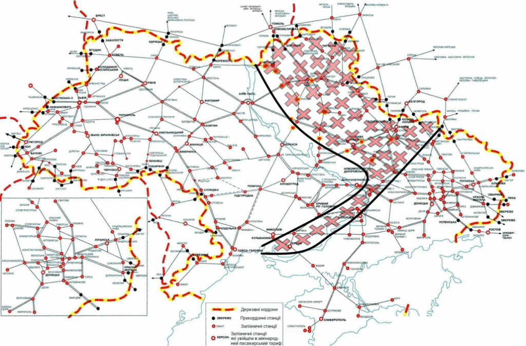 MAP OF UKRAINIAN RAIL LINES AND TRAIN STATIONS WITH UDZ OVERLAY