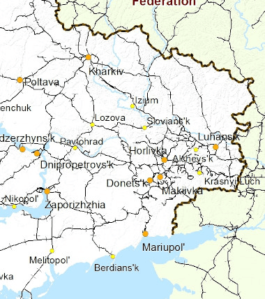 To be able to supply its forces any Russian move must follow the rail lines and create some safety corridor left and right of them. Some railways will be damaged by fighting but Russia has special railroad regiments that are trained and equipped to do repairs under war conditions. The move from the south would go to Pavlovgrad (Pavlovhrad) while the move from the north would pass Kharkiv in the west and aim at Lozova. When both are taken the Ukrainian army at the eastern front will be completely cut off from the rest of Ukraine and, without supplies, will have to surrender or die.