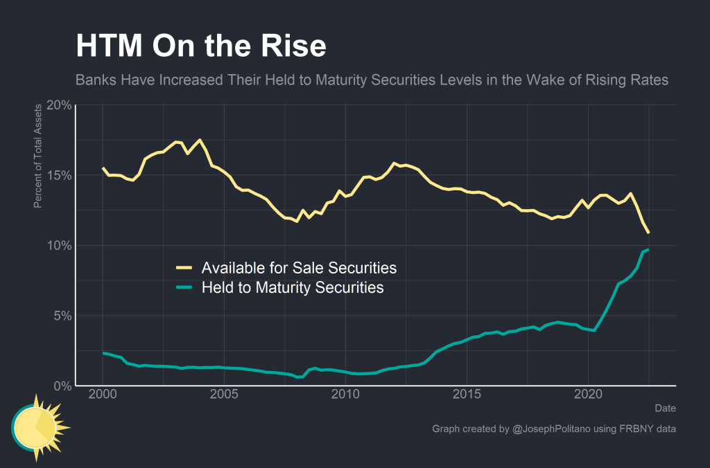 And the contagion risk is rising — HTM and AOCI are bleeding as interest rates rise, even as that portion of bank balance sheets gets bigger.