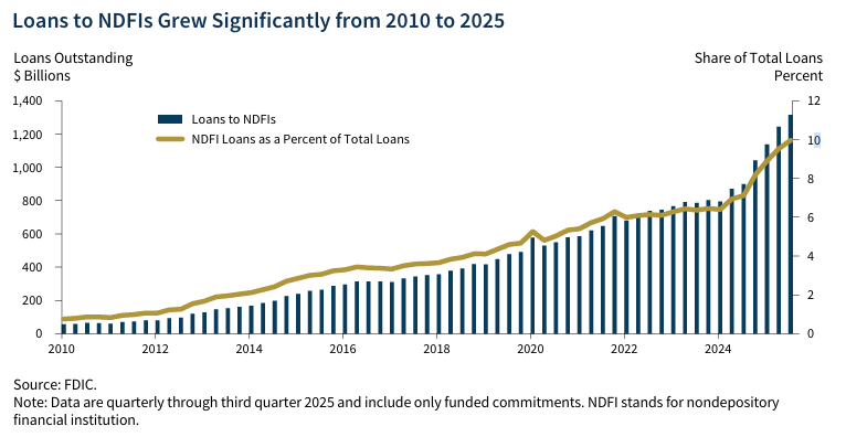 Federal Deposit Insurance Corporation. (2026, February 17). Bank lending to nondepository financial institutions. https://www.fdic.gov/analysis/2026-02/bank-lending-nondepository-financial-institutions