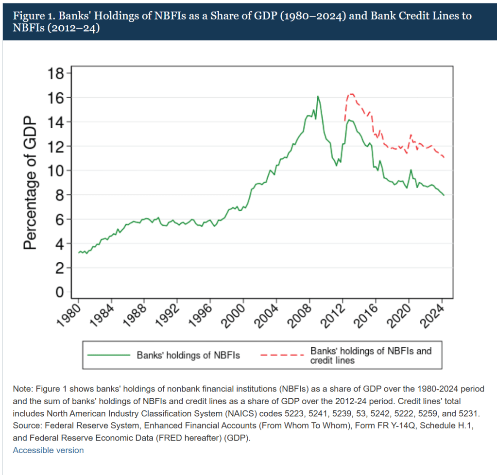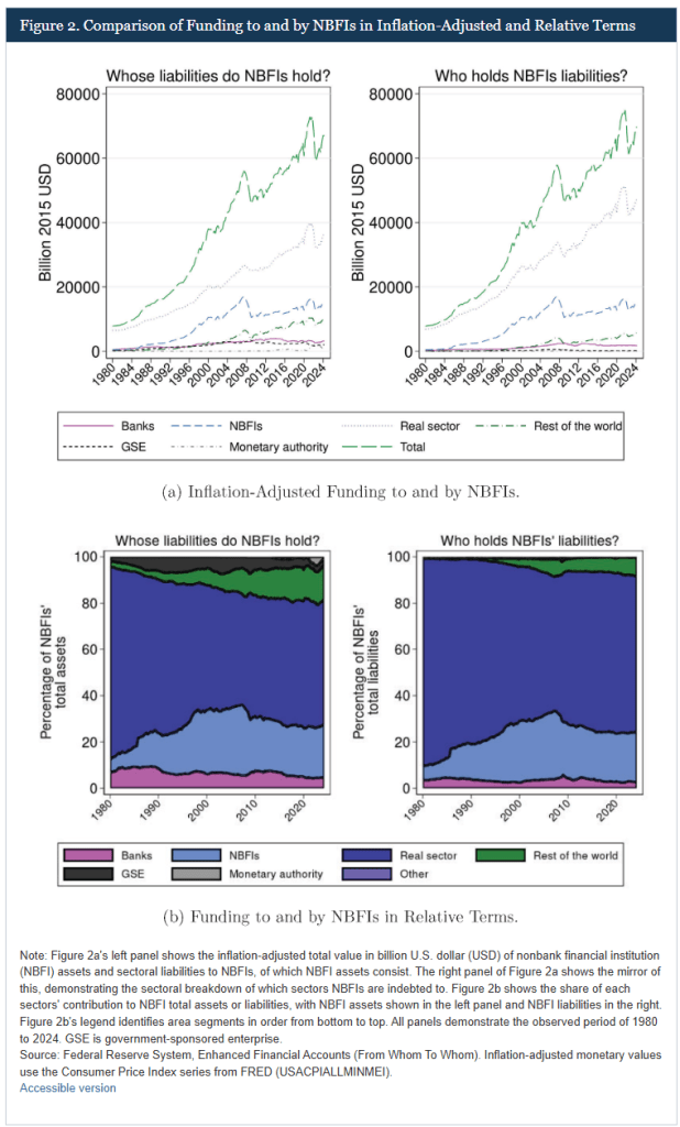 The growing importance of non-bank financial institutions (NBFI)s also caught the attention of the Federal Reserve in recent study (Duque Gabriel & Sterling, 2025).