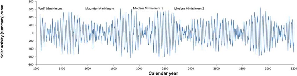 “This discovery of double dynamo action in the Sun brought us a timely warning about the upcoming grand solar minimum 1, when solar magnetic field and its magnetic activity will be reduced by 70%. This period has started in the Sun in 2020 and will last until 2053. During this modern grand minimum, one would expect to see a reduction of the average terrestrial temperature by up to 1.0°C, especially, during the periods of solar minima between the cycles 25–26 and 26–27, e.g. in the decade 2031–2043.