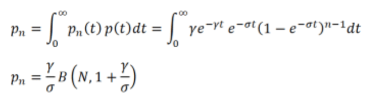 Combining species and genus growth effects, we can compute the probability a genus has size n at time t as: